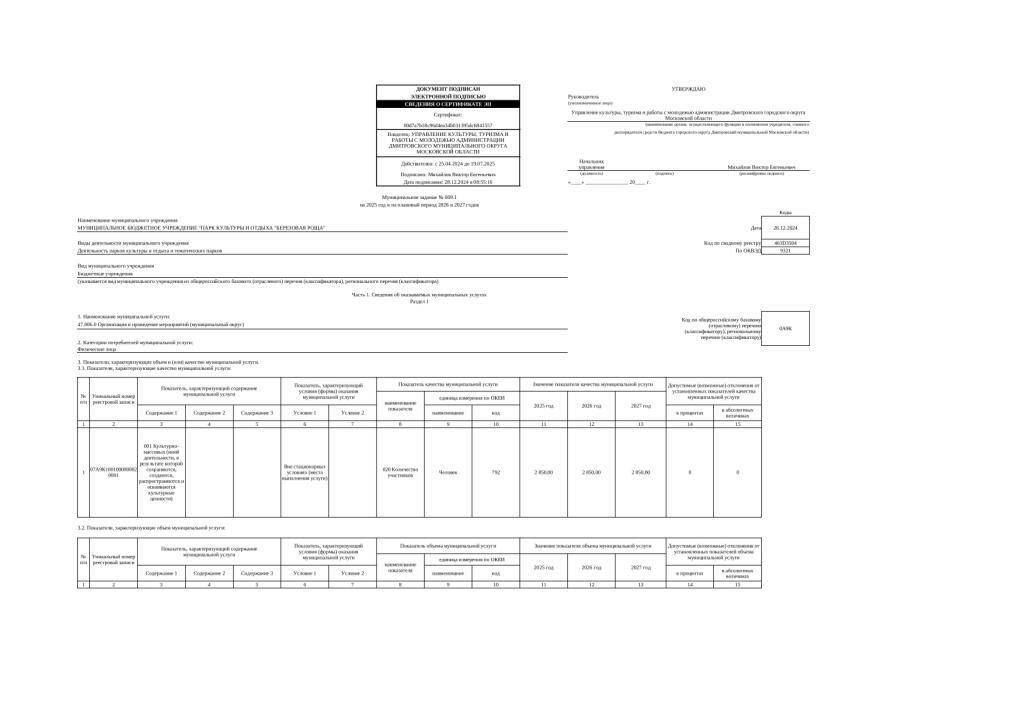 Муниципальное задание №009.1 на 2025 год на плановый период 2026-2027 годов