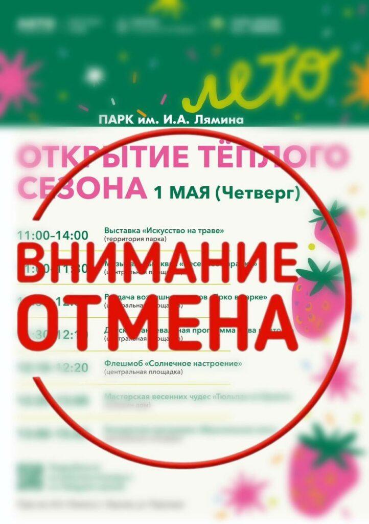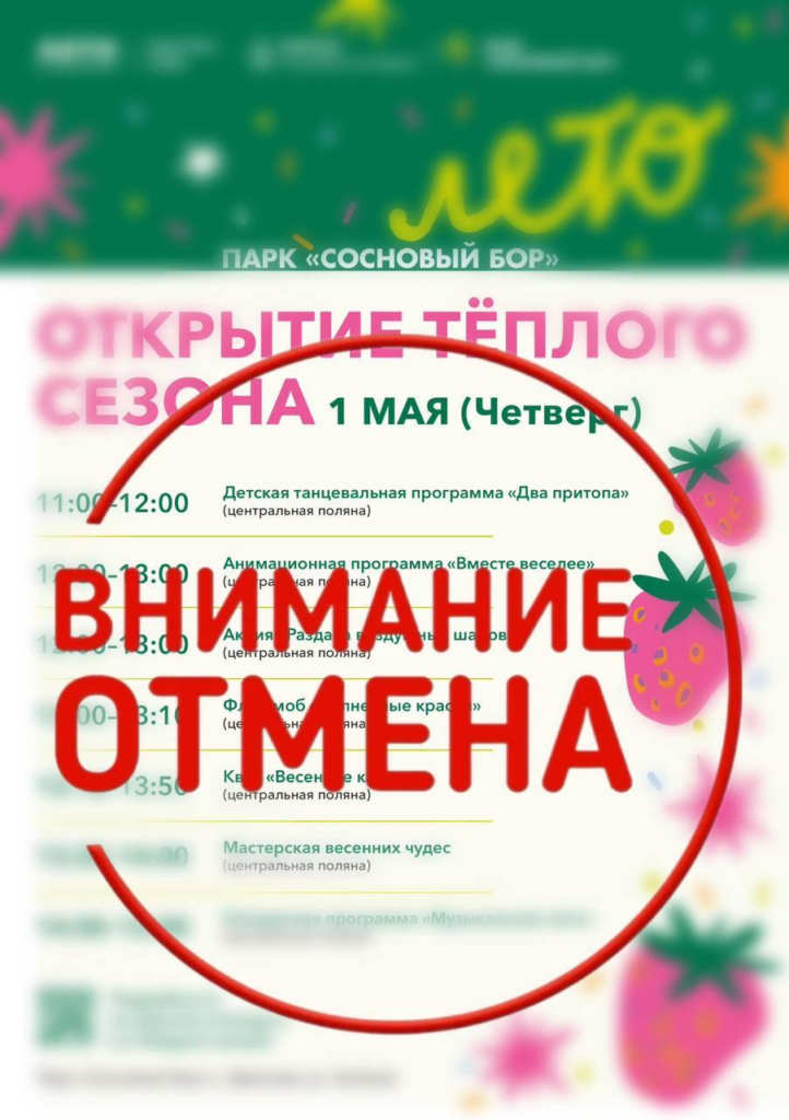 В связи с погодными условиями, к сожалению, мероприятия, посвященные открытию теплого сезона, сегодня (1 мая) отменяются 🌧️