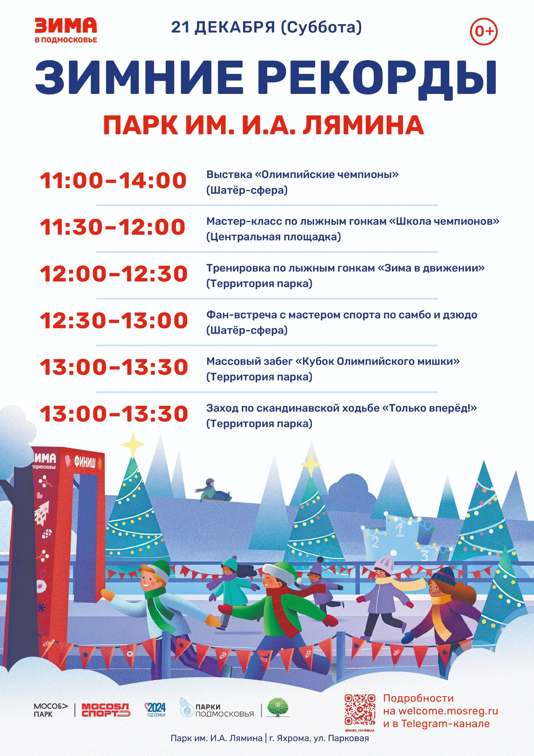 Приглашаем вас на увлекательное спортивное мероприятие «Зимние рекорды», которое состоится в парке им. И.А. Лямина в городе Яхрома.