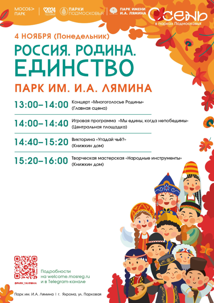 🎆 4 ноября вас ждет увлекательная программа «Россия. Родина. Единство», посвящённая этому важному празднику.