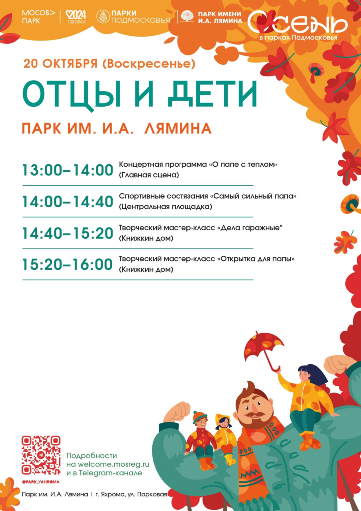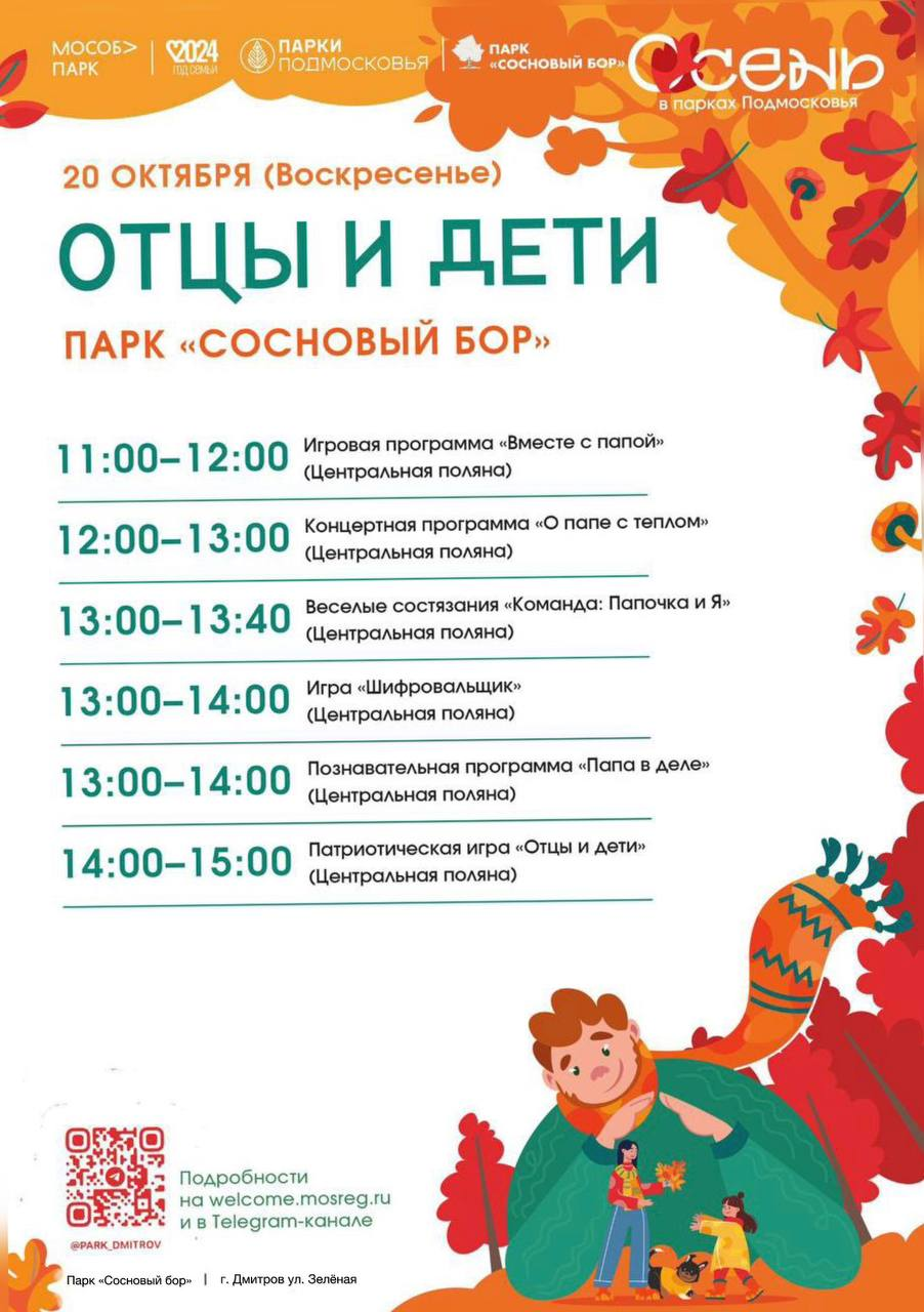 20 октября в парке им. И.А. Лямина г. Яхрома🌳 и в парке «Сосновый бор» г.Дмитров🌲 состоится общеобластное мероприятие «Отцы и дети»