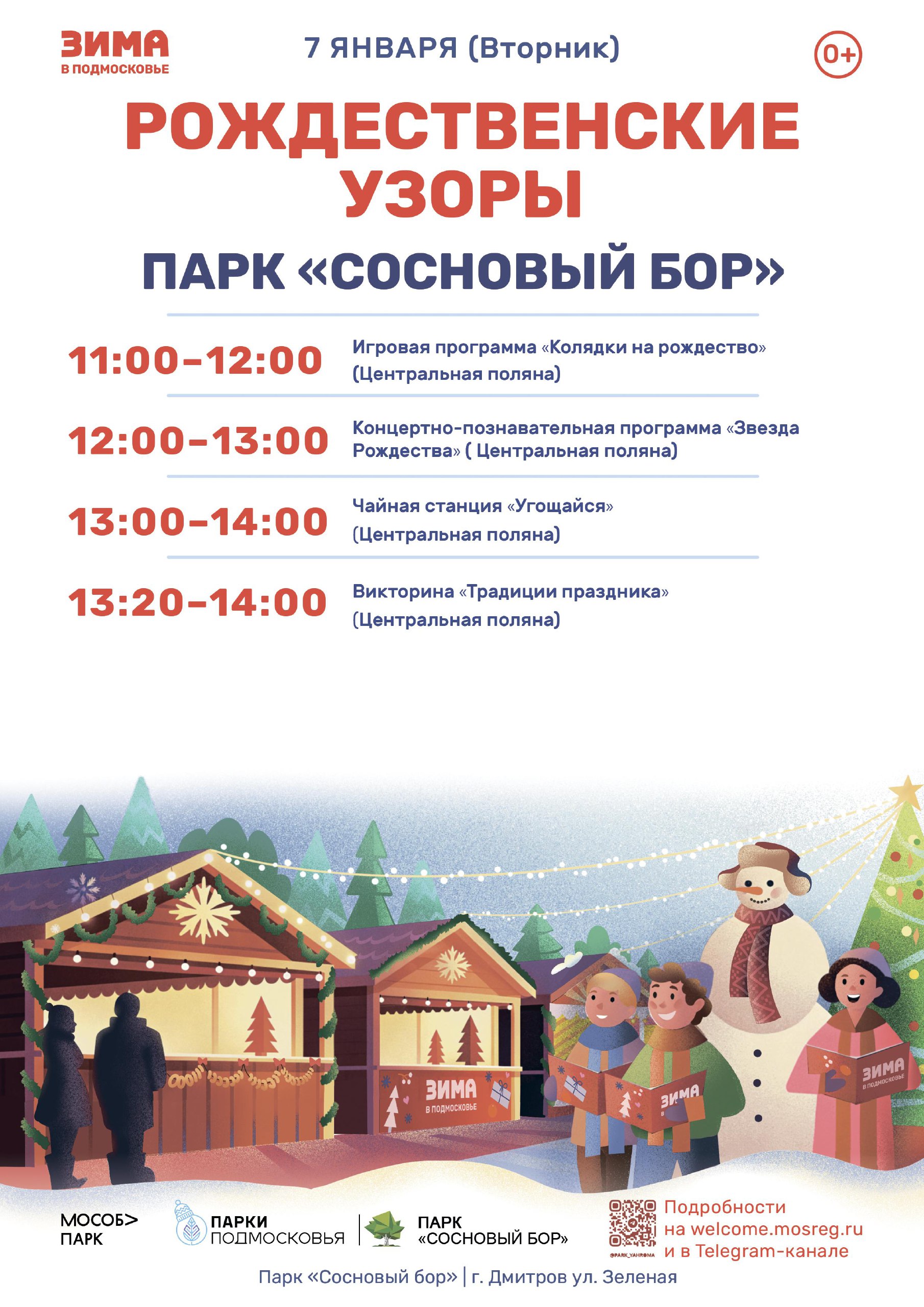 С радостью приглашаем вас в парки Дмитровского округа на мероприятие, посвящённое празднованию Рождества – «Рождественские узоры».