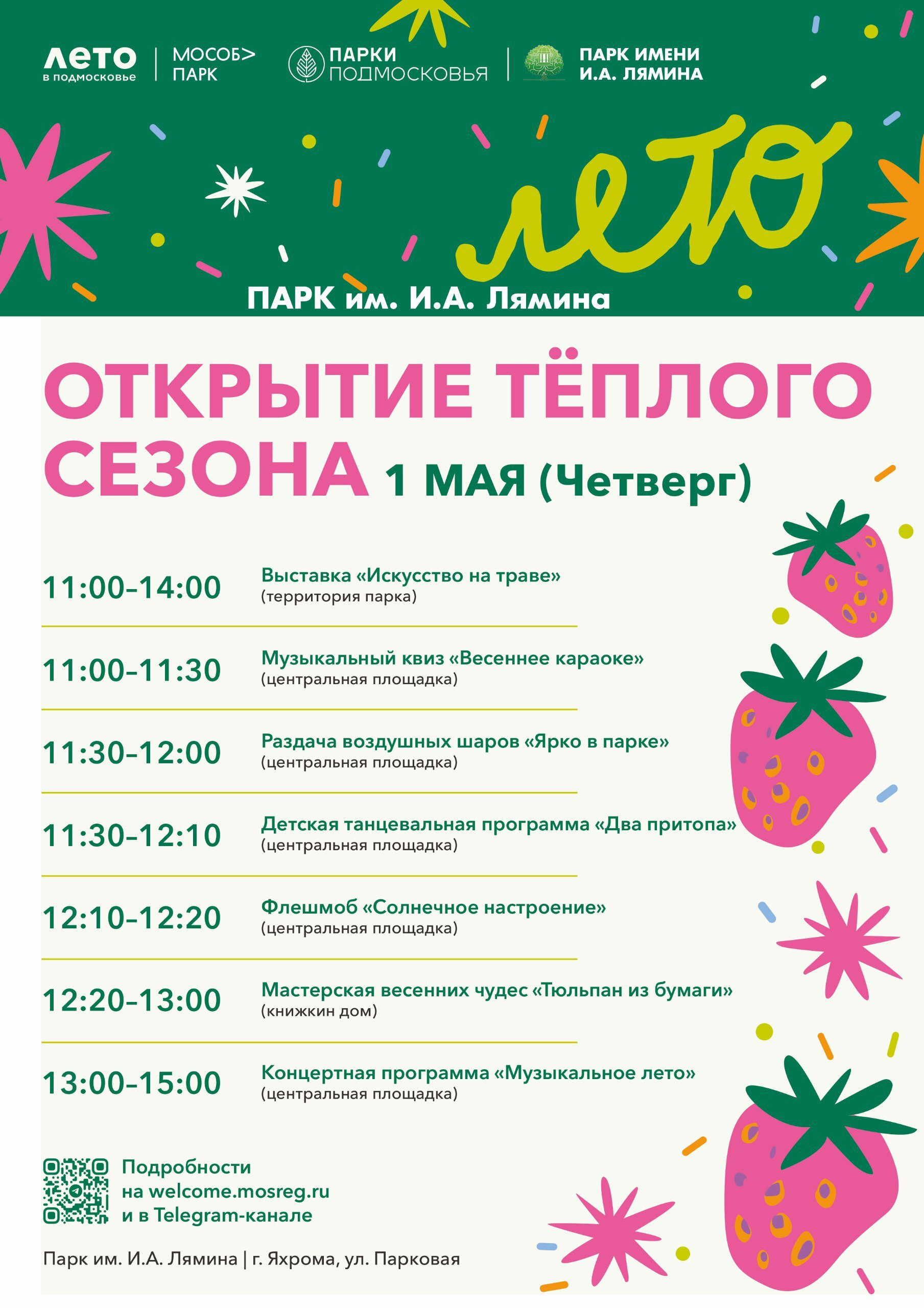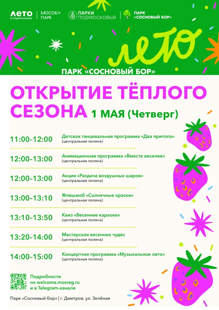 Дорогие друзья, 1 мая приглашаем вас на яркое праздничное мероприятие в честь открытия тёплого сезона в парках Дмитровского муниципального округа!