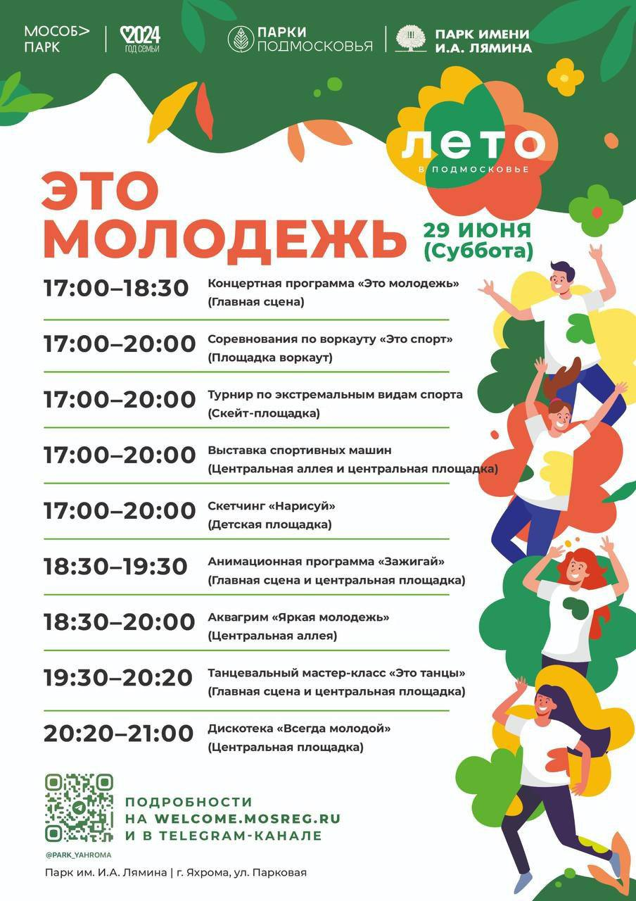 💥29 июня в парках Дмитровского округа состоится яркое мероприятие «Это молодежь»🤩